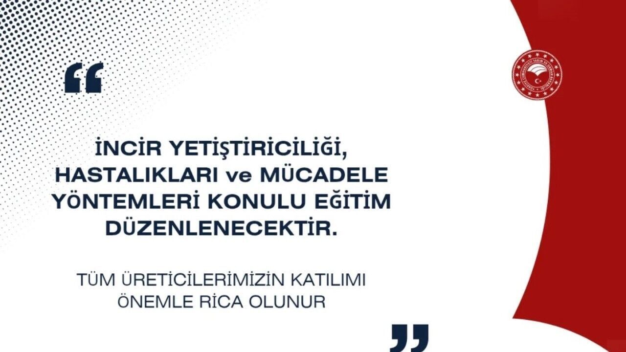 Eğitimle ilgili Buharkent İlçe Tarım ve Orman Müdürlüğü’nden yapılan açıklamada, "İncir Yetiştiriciliği, Hastalıkları ve Mücadele Yöntemleri Konulu Eğitim Düzenlenecektir. Tüm üreticilerimizin katılımı önemle rica olunur" ifadelerine yer verildi.