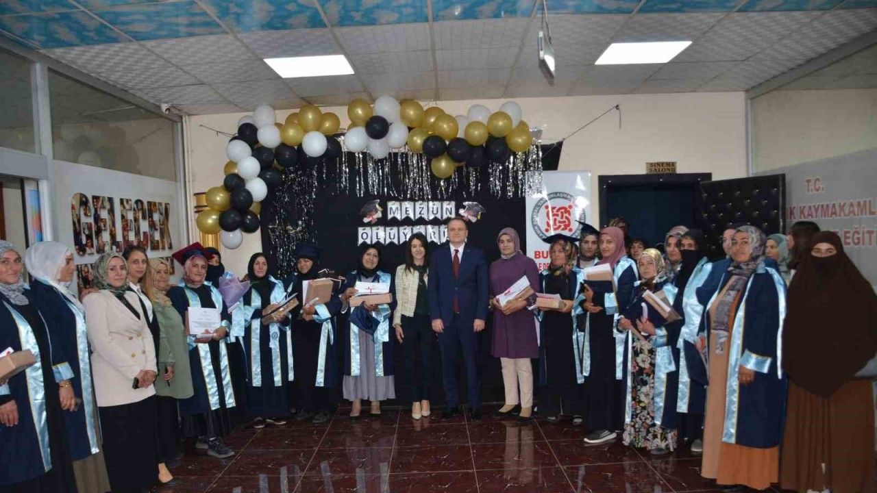 Bulanık Kaymakamlığı Aile Destek Merkezi (ADEM) bünyesinde, Halk Eğitim Merkezi Müdürlüğü’nün katkılarıyla açılan okuma yazma kursuna katılan 30 yaş ve üzeri 29 kadın, okuma yazma öğrenmenin gururunu yaşadı.
