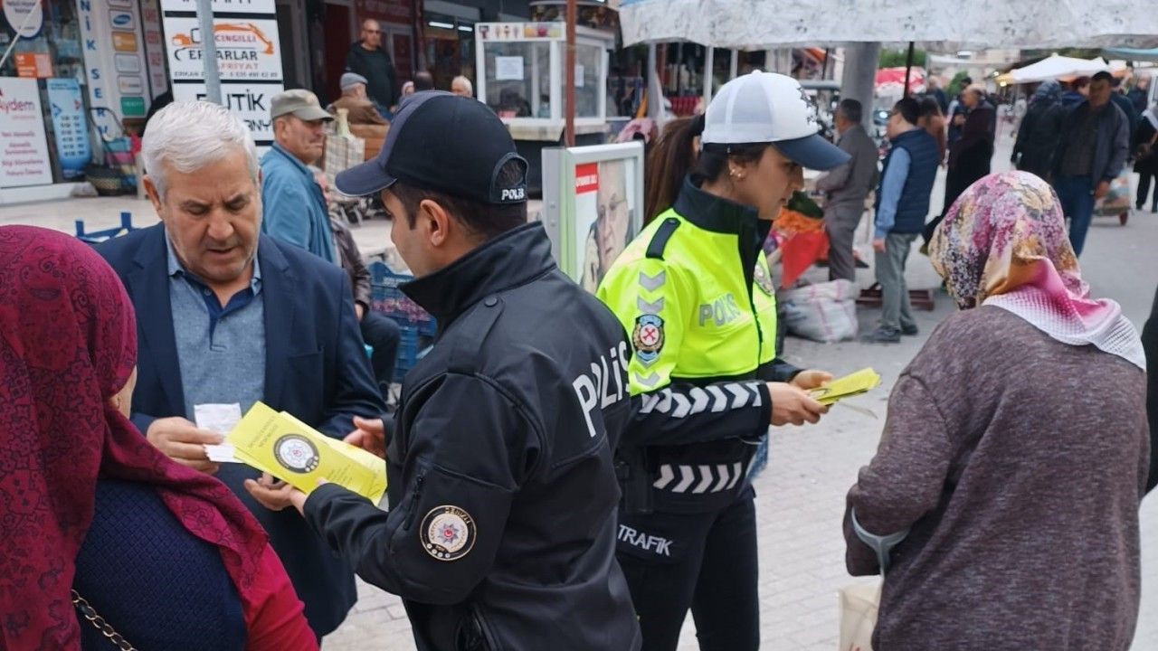 Buldan Pazaryerinde vatandaşları dolandırıcılara karşı uyaran Buldan İlçe Emniyet Müdürülüğü ekipleri, broşürde dağıtarak dolandırıcılara karşı yapılması gerekenler hakkında bilgiler verdi.