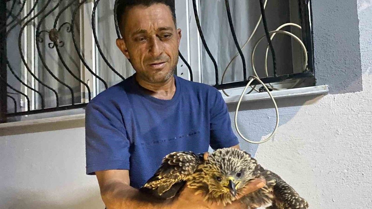 Osmaniye’nin Düziçi ilçesinde incir toplarken kanalın içinde bitkin halde bulduğu şahini kurtaran çiftçi Ali Kötüğ, açlıktan halsiz kalan kuşa ciğer dürümü söyledi.