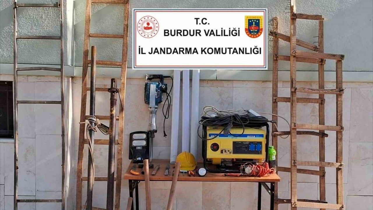 Burdur’da jandarma ekiplerinin tarafından gerçekleştirilen kaçakçılık operasyonunda 2 adet dedektör, 2 adet jeneratör ve 30 adet muhtelif kazı malzemesi ele geçirilirken 12 şahıs gözaltına alındı.