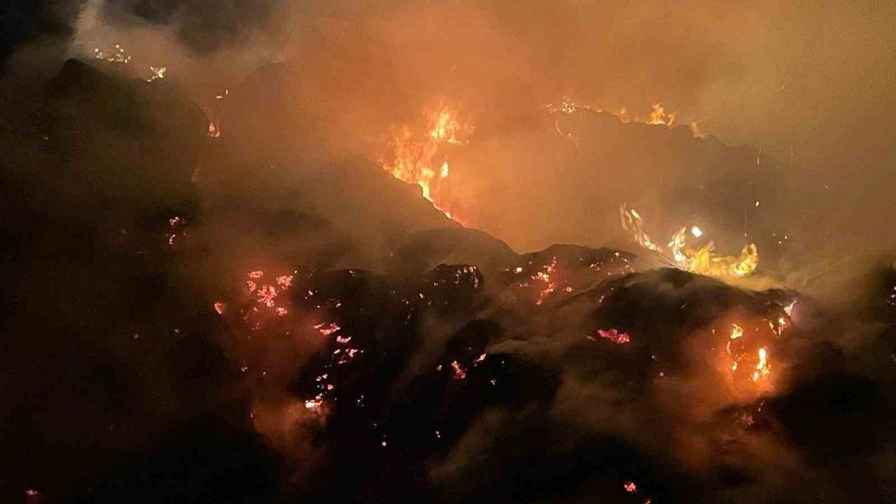 Burdur’da çıkan yangında yaklaşık 2 bin saman balyası yandı.