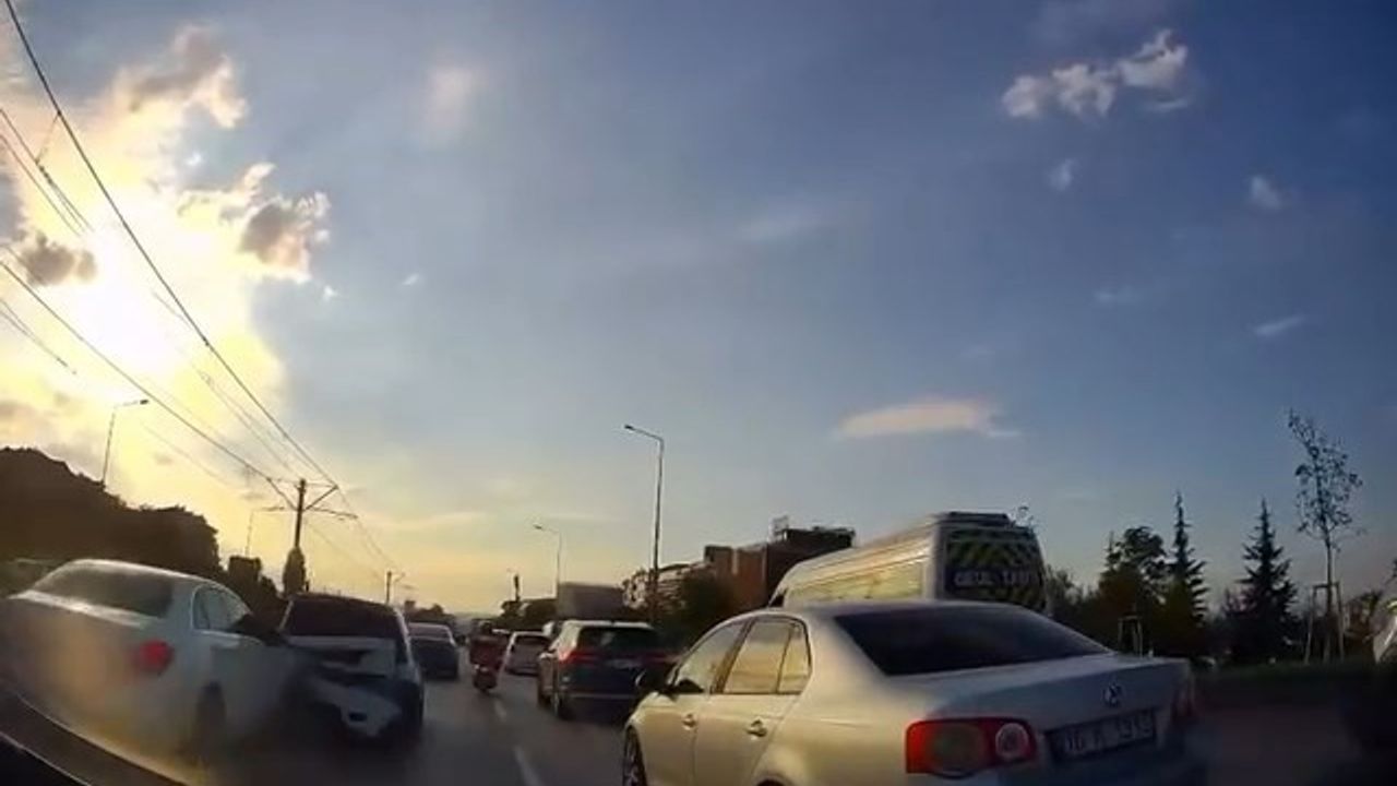 Bursa’nın Nilüfer ilçesinde duran trafikte zincirleme kaza anı otomobilin kamerasına yansıdı. Araçların kullanılmaz hale geldiği kazada bir motosikletli ise ölümden döndü.