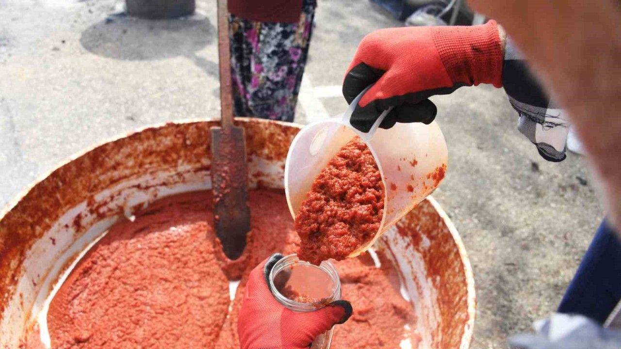 Bursa’nın merkez Osmangazi ilçesinde ihtiyaç sahipleri için imece usulüyle bir seferberlik hayata geçirildi. Belediyenin domates ve biberleri temin etmesiyle bu kişilerin bir yıllık salça ihtiyacı imece usulüyle odun ateşinde kaynatılarak hazırlandı.