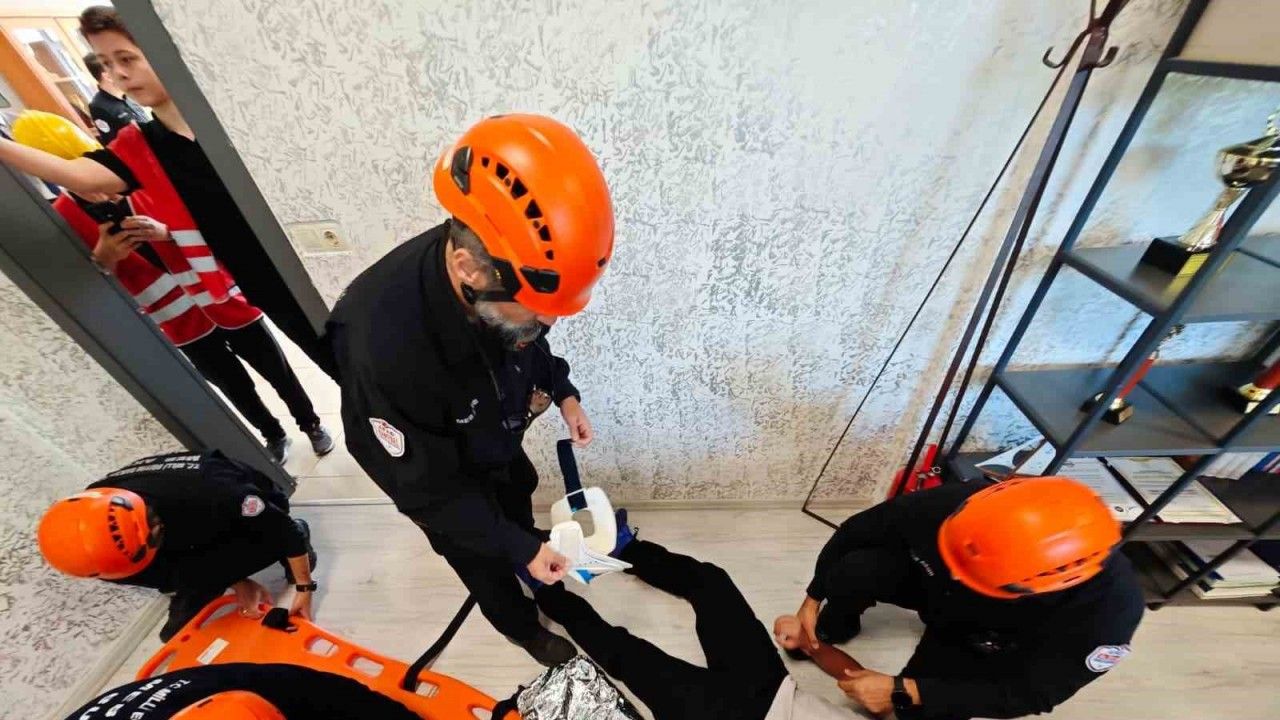 Atatürk Mesleki ve Teknik Anadolu Lisesi’nde öğrencilerin de katıldığı deprem ve yangın tatbikatı gerçeği aratmadı.