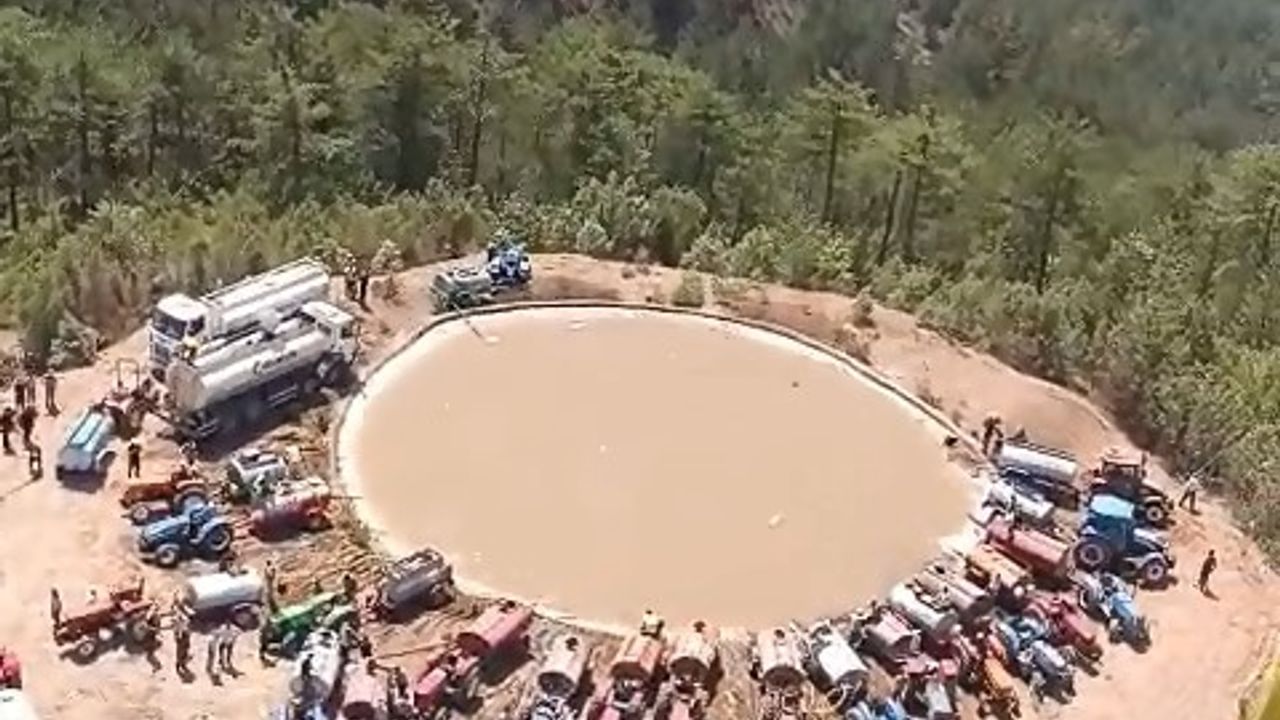 Yangına hem havadan hem de karadan müdahale edilirken, en çarpıcı görüntülerden biri helikopterden kaydedildi. Helikopter su almak için alçaldığı sırada havuzun etrafında sıralanmış yüzlerce yangın söndürme tankeri dikkat çekti. Ancak havuzdaki su tükenince tankerler bu kez helikopterlere su taşıma görevini üstlendi. Onlarca tanker havuzu yeniden doldurarak helikopterlerin kesintisiz çalışmasına destek verdi. Çiftçilerin oluşturduğu traktörlü tanker ordusu ise, söndürme helikopterinden görüntülendi.