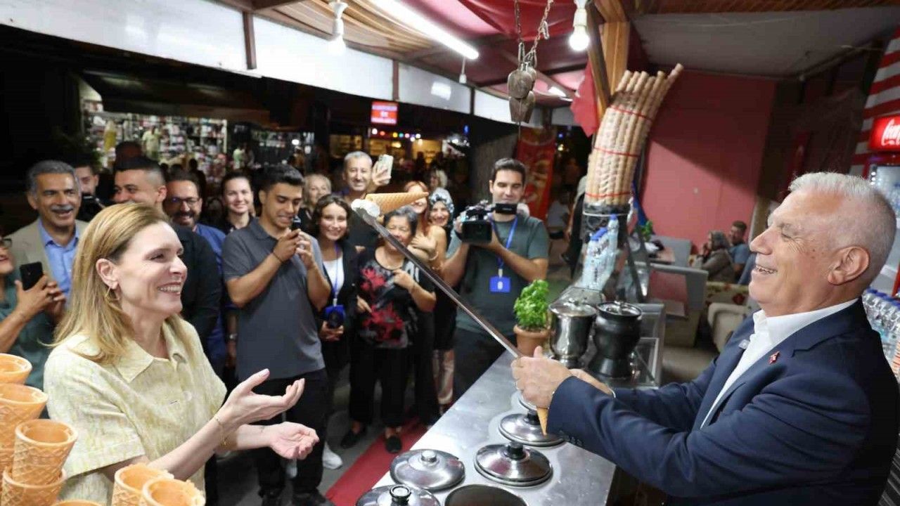 Bursa Büyükşehir Belediye Başkanı Mustafa Bozbey, ‘Başkan Bozbey Burada’ programı için gittiği Gemlik’te gün boyunca yaptığı temaslarla vatandaşların sorunlarını dinledikten sonra akşam saatlerinde de Kumla’da esnafı ziyaret etti. Eşi Seden Bozbey’le birlikte vatandaşlarla sohbet edip keyifli vakit geçiren Başkan Bozbey, dondurma tezgahına geçerek çocuklara dondurma da dağıttı.