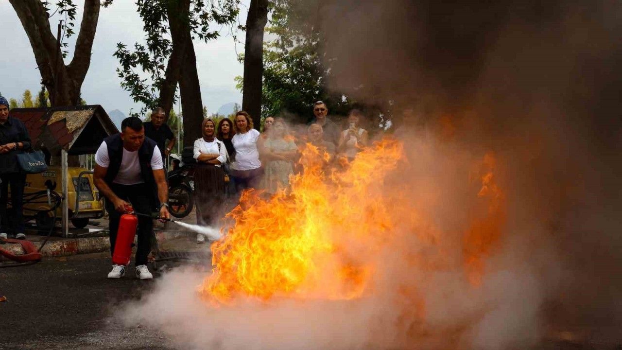Antalya Büyükşehir Belediyesi İtfaiye Daire Başkanlığı, kurum içi iş güvenliği tedbirleri kapsamında belediye personeline yönelik yangın eğitimlerini sürdürüyor. Eğitimlerde yangınların nedenleri, acil durum müdahaleleri ve tahliye yöntemleri teorik olarak anlatılırken, uygulamalı yangın söndürme tatbikatları ile bilgiler pratiğe dökülüyor.