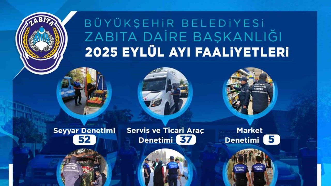 Kayseri Büyükşehir Belediyesi Zabıta Daire Başkanlığı, Eylül ayında 383 denetim gerçekleştirerek şehrin huzur ve güvenliğine katkı sağladı.
