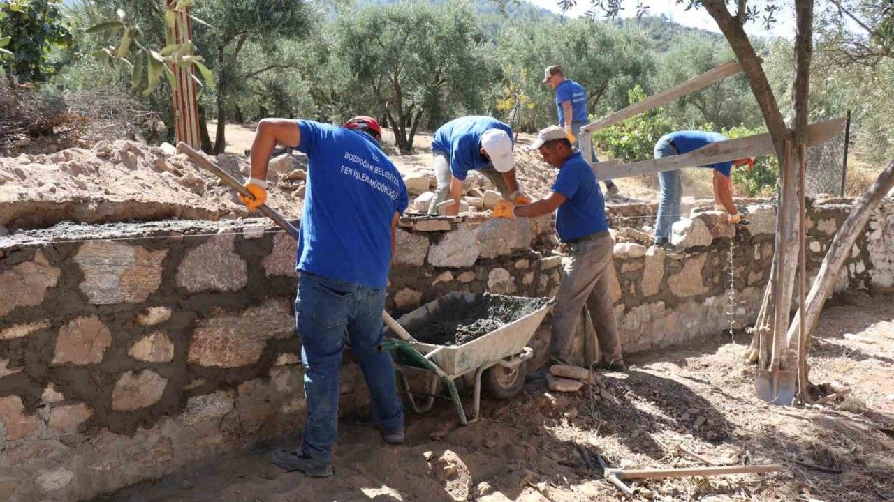 Aydın’ın Bozdoğan ilçesinde çalışmalarını sürdüren belediye ekipleri, Çamlıdere Mahallesi’ndeki riskli yollarda istinat duvarı yaparken, deforme olan okul bahçe duvarını da yeniledi.
