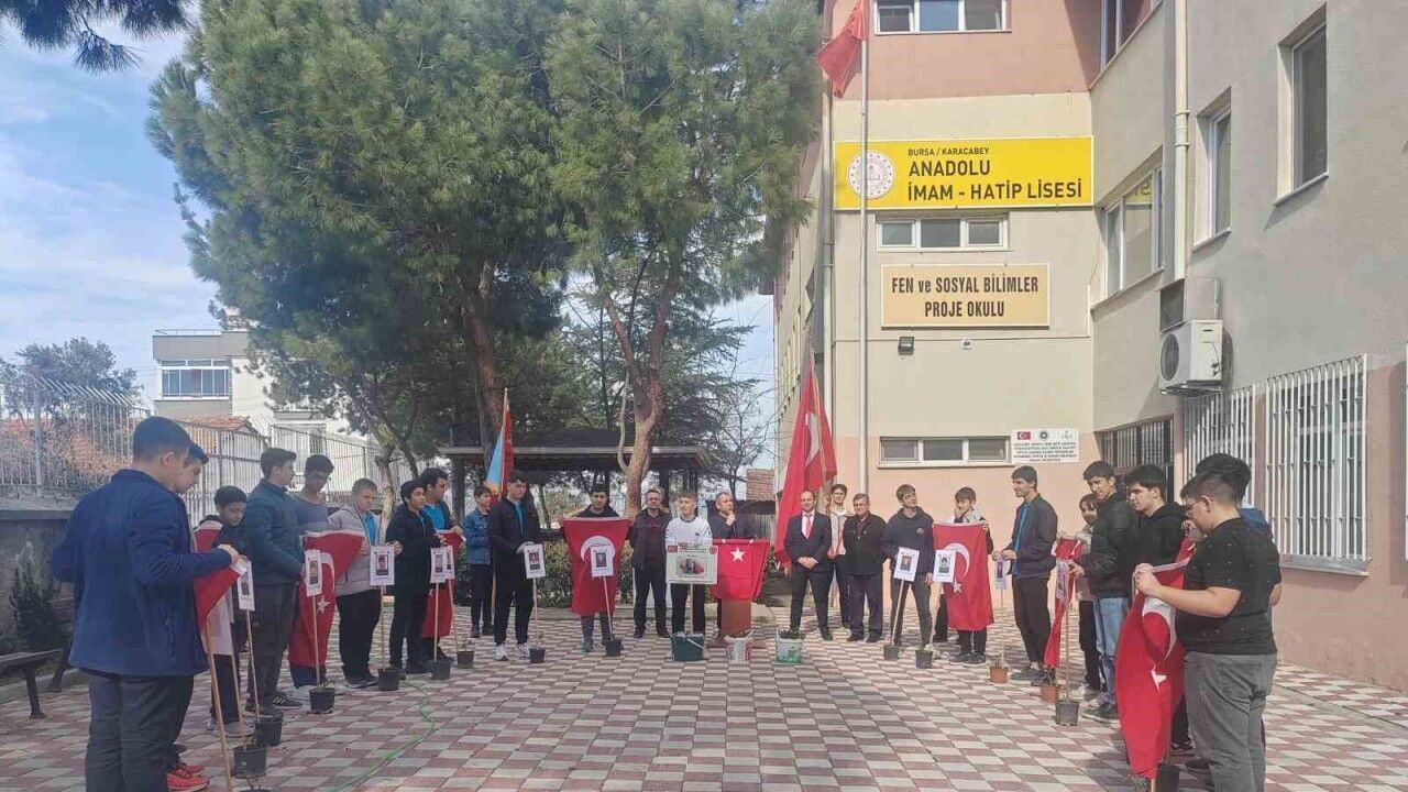 Karacabey Anadolu İmam-Hatip Lisesi bahçesinde gönüllü öğrenciler tarafından köklendirilen gül fidanları, Çanakkale Zaferi ve Şehitler haftasında Karacabeyli şehitler adına okul bahçelerinde toprakla buluştu