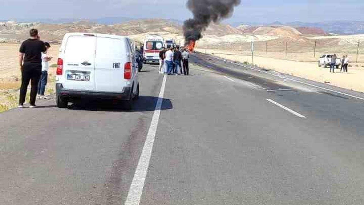 Ankara’nın Beypazarı ilçesinde meydana gelen kazada, kazaya karışan araçlardan biri yandı. Yanan aracın sürücüsü yaralandı.
