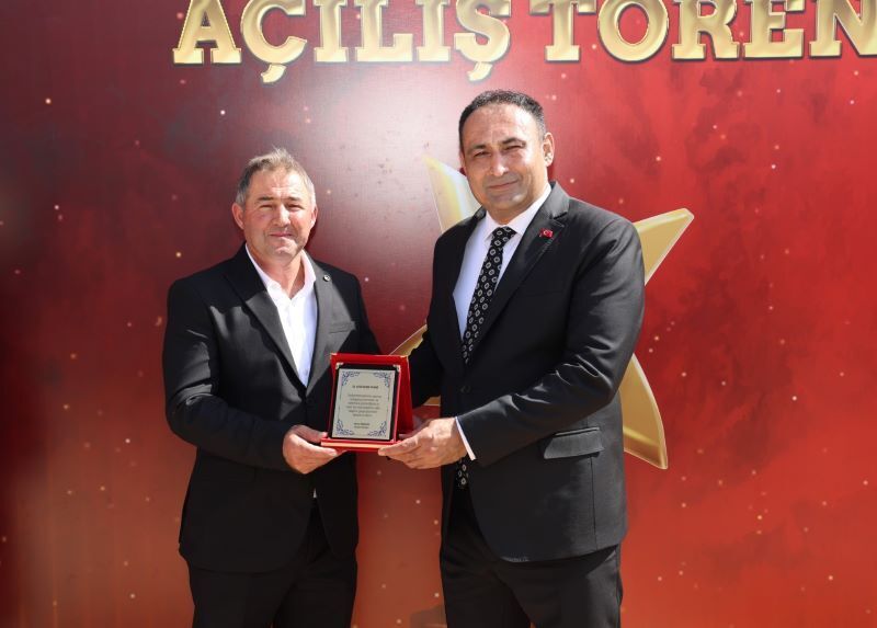 Uluslararası Kafkas Derneği Genel Başkanı Oğuz Berk ve Sadiye Mahale Muhtarı Mutlu Özdemir de Başkan Yılmaz’a, teşekkür plaketi takdim etti.