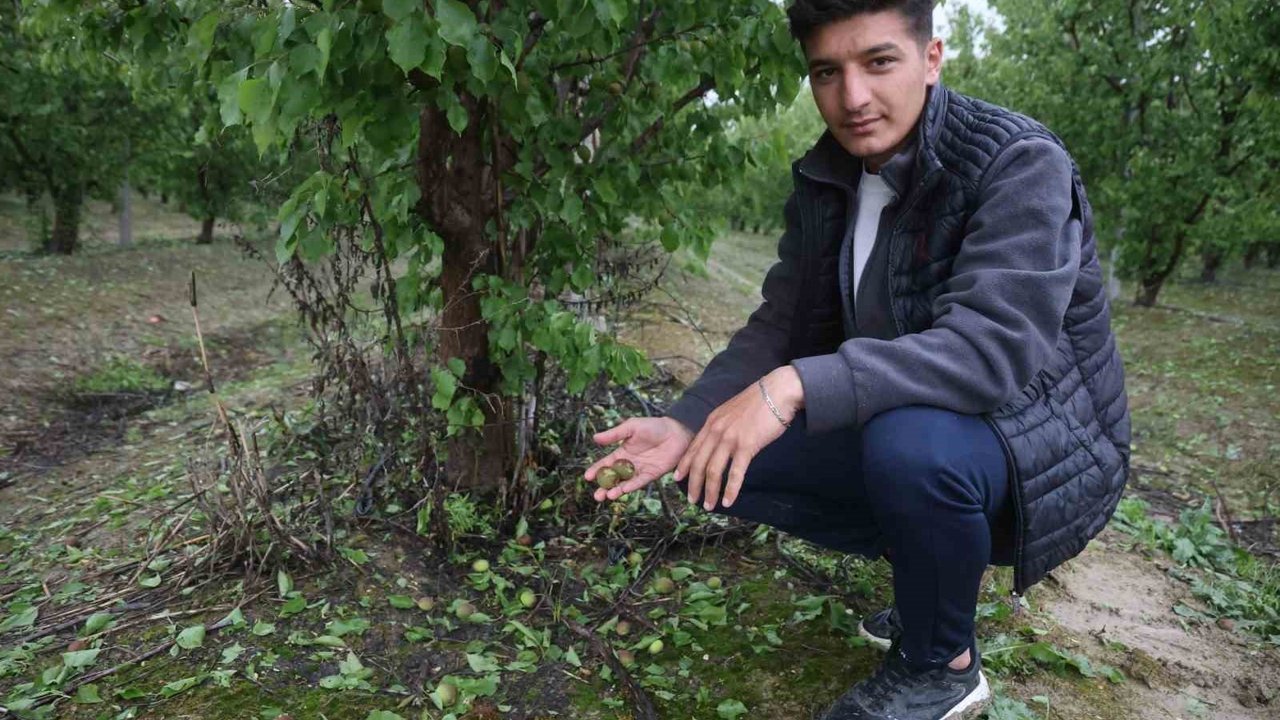 'Fındık büyüklüğünde dolu yağdı, kayısı bahçesinde meyvelerde lekeler yaptı ve çoğu meyvemiz yere döküldü'