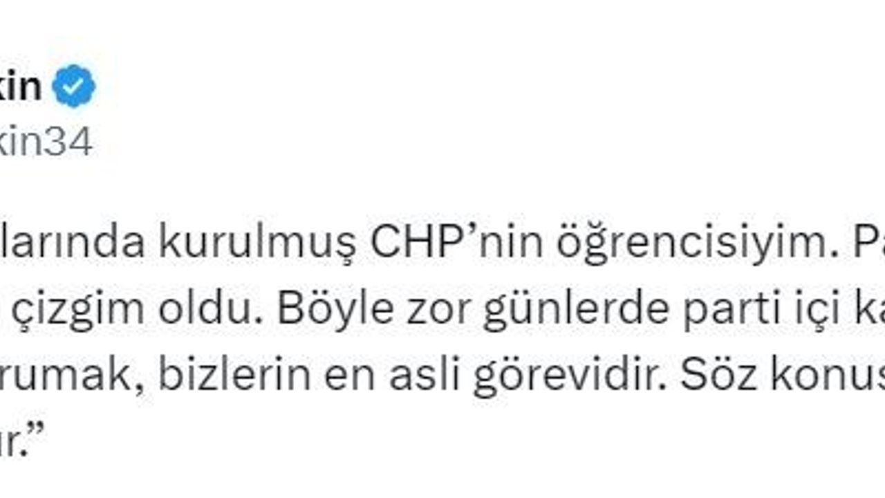 Gürsel Tekin sosyal medya hesabı üzerinden yaptığı paylaşımda, "Savaş meydanlarında kurulmuş CHP’nin öğrencisiyim. Partim, yaşamım boyunca kırmızı çizgim oldu. Böyle zor günlerde parti içi kardeşliği ve dayanışmayı korumak, bizlerin en asli görevidir. Söz konusu CHP ise gerisi teferruattır" ifadelerini kullandı.