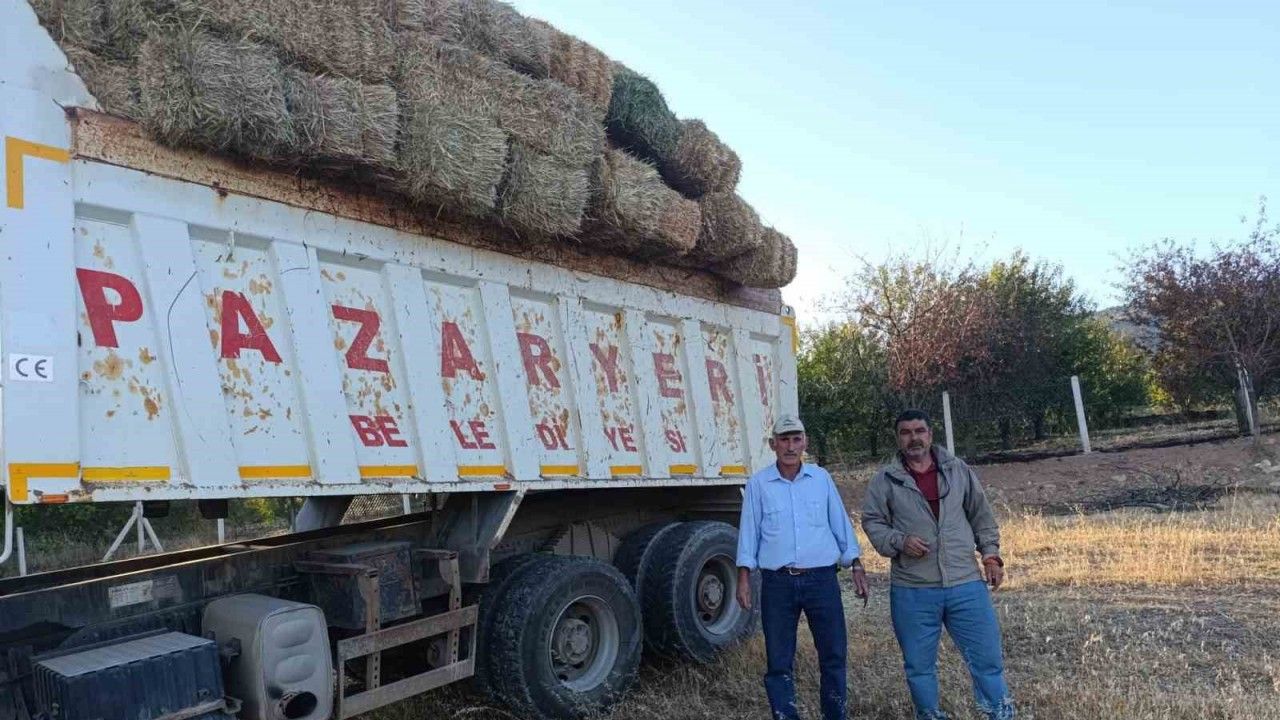 Pazaryeri Belediye Başkanı Zekiye Tekin’in çağrısıyla harekete geçen duyarlı çiftçileri, yangında hayvan yemlerini kaybeden üreticiler için seferber oldu.