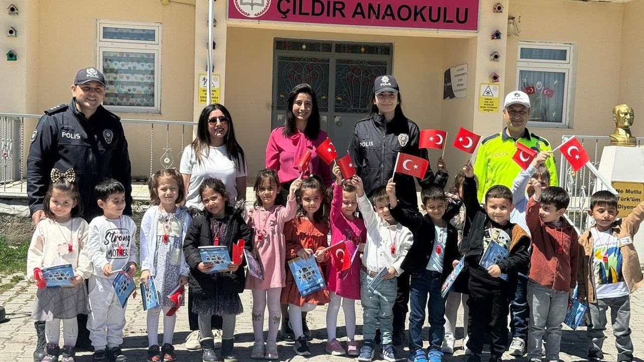 Çıldır Anaokulunda Trafik ve İlk Yardım Haftası kapsamında okul bahçesinde İlçe Emniyet Amiri ve ekibinin katılım ve destekleriyle minik öğrencilere eğitim verildi. Anlatımları ilgiyle dinleyen öğrenciler haftanın anlam ve önemini kavradılar. Drama ve oyunlarla etkinliğe katılan öğrenciler gelen hediyelerle çok mutlu oldular. Çıldır Milli Eğitimi Müdürü Gürbüz Yıldız trafik eğitimi ile ilgili olarak ,’’Bu etkinlikte bizden desteğini esirgemeyen İlçe Emniyet Amirimiz aynı zamanda velimiz Halit KARAHAN başta olmak üzere polis memurlarımıza, okul Müdürümüz ve öğretmenimize çok teşekkür ediyoruz’’ dedi.