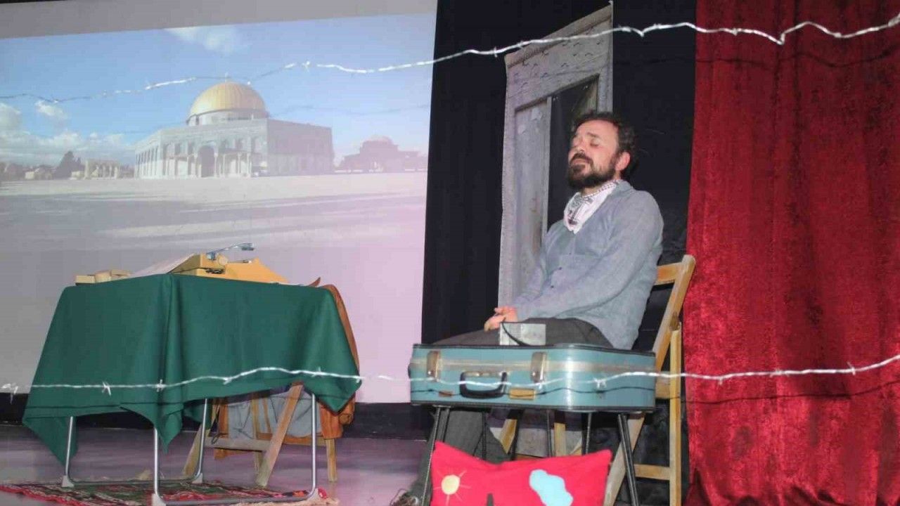 Bir Filistin Hikayesi anlatılan tiyatroda, duygusal anlar yaşayan izleyiciler, sanat yoluyla Filistin halkının yaşadığı trajediyi bir kez daha hatırladı.
