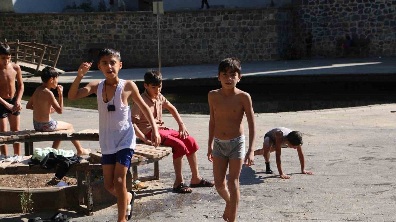 Diyarbakır’da kavurucu sıcaklar yerini serin havaya bıraktı. Serin havaya rağmen süs havuzlarında eğlenen çocukların en çok tercih etti yer, Sur ilçesi İskenderpaşa Mahallesi’ndeki tarihi Anzele havuzu. Anzele parkındaki suya giren çocuklardan İbrahim Karakuş, havaların öğle saatlerinde sıcak olmasından dolayı Anzele havuzuna geldiklerini söyledi.