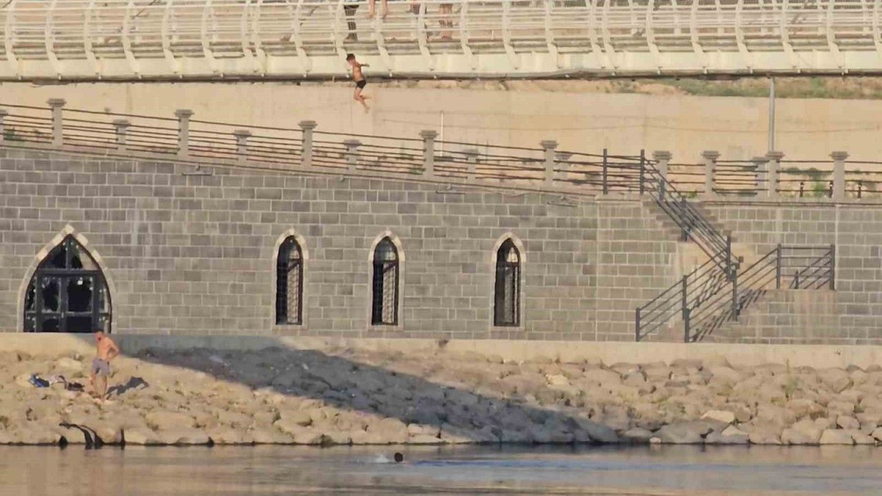 Hava sıcaklığının yüksek olduğu Cizre ilçesinde çocuklar, serinlemek için tehlikeye aldırış etmeden İsmail Ebul-iz Elcezeri asma köprüsü üzerine çıkarak Dicle Nehri’ne atladı. Yürekleri ağza getiren o anlar cep telefonu kamerasına yansıdı. Köprü demirlerinin üzerine çıkarak suya atlayan çocukların daha sonra yüzerek sudan çıktığı görüldü.