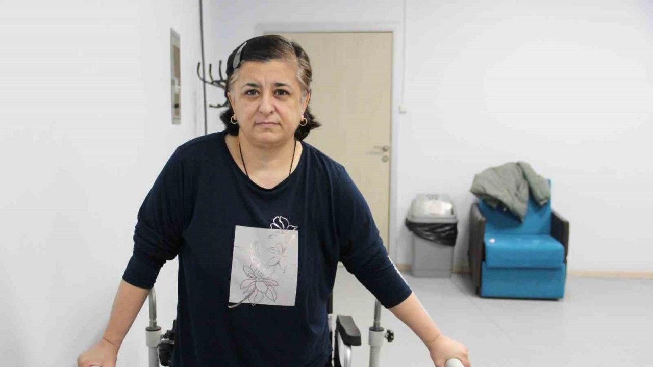 Yaşamış olduğu zorlu süreçleri dile getiren Nalan Erkoç, "2011 yılında kanser teşhisi aldım. Uzun süreli ciddi bir tedavi gördüm. Daha sonrasında 8 yıl sonra yürüme kabiliyetimi kaybetmeye başladım. Uzun süre doktorlara gittim. Çok çeşitli tedaviler gördüm. Ancak hiçbirinde ayağa kalkabileceğim, yeniden yürüyebileceğim söylenmedi. Zaten Onkoloji’den çıktığımda da ‘2,5-3 aylık ömrün kaldı denilmişti. O yüzden çokta üzerine düşmedik uzun süre. Sonra hayatta kalınca yürüyebilmek için çabalamaya başladım. Çeşitli fizik tedavi hastanelerinde fizik tedavi gördüm. Ancak hiçbirinden sonuç alamadık. Süreler kısa olduğu için ayağa kalktım. Tam yürüme aşamasında eve dönmek zorunda kaldım. İlk defa Erol Olçok Hastanesi’nde Ayla Hocam ve ekibi bir tarafından çok ciddi bir tedaviye başladık. Devam ediyoruz. Ayağa kalktım, adımlamaya başladım. Bir cihaz yapıldı, o cihazla yürümeye çalışıyorum. Ümidimi tamamen kaybetmiştim. Yatalak hayata hazır ol, artık yürüyemezsin, sinirlerin bitmiş, ayağa kalkman mümkün değil denilmişti. Bu nedenle ümidimi çok kaybetmiştim ama buraya geldim. Ayla hocam ve ekibi tarafından tedavi sürecine alınınca yeniden ümitlendim. Ben de çok gayret ediyorum onlarda yardımcı oluyorlar" dedi.