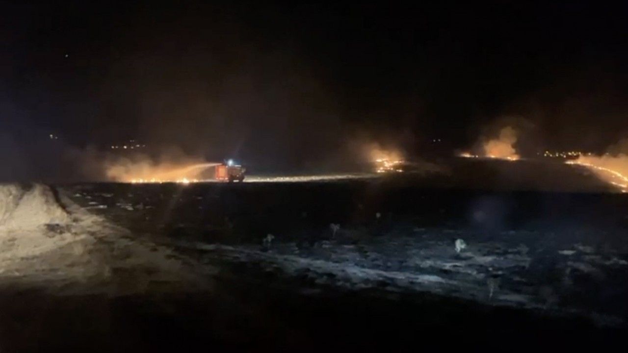Çorum’un Alaca ilçesinde kuru otların tutuşması sebebiyle çıkan yangında 300 dönümlük mera zarar gördü.