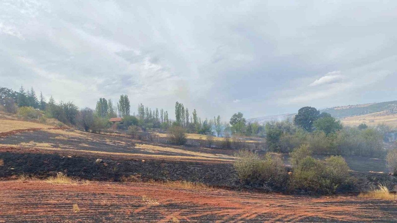 Çorum’un Alaca ilçesinde çıkan yangında 250 dönüm tarla ve 15 dönüm ormanlık alan zarar gördü.