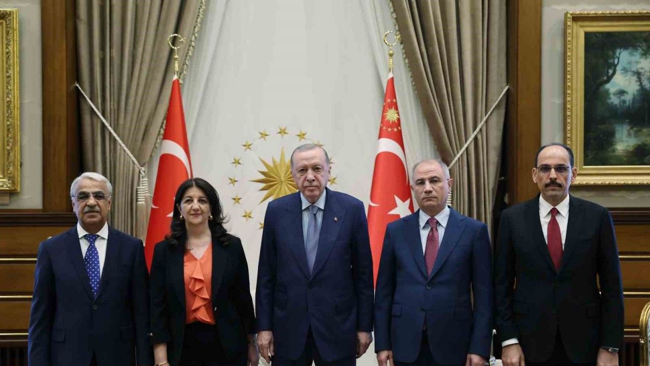 Cumhurbaşkanı Recep Tayyip Erdoğan, Halkların Eşitlik ve Demokrasi Partisi (DEM Parti) heyetinde yer alan TBMM Başkanvekili ve Van Milletvekili Pervin Buldan ile Şanlıurfa Milletvekili Mithat Sancar’ı Cumhurbaşkanlığı Külliyesinde kabul etti. Yaklaşık 1 saat süren kabulde, MİT Başkanı İbrahim Kalın ve AK Parti Genel Başkanvekili Efkan Ala yer aldı.