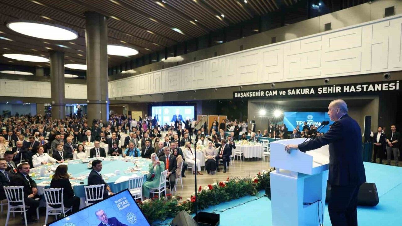Cumhurbaşkanı Recep Tayyip Erdoğan, 14 Mart Tıp Bayramı kapsamında İstanbul Başakşehir Çam ve Sakura Şehir Hastanesinde sağlık çalışanları için düzenlenen iftar programına katıldı. İftar sonrasında sağlık çalışanlarının tıp bayramını kutlayarak konuşmasına başlayan Cumhurbaşkanı Erdoğan, "Ülkemizin 81 vilayetinde milletimize hizmet eden toplam sayısı 1,5 milyona ulaşan sağlık çalışanlarıma şükranlarımı sunuyorum. Hekimlerle beraber tüm sağlık çalışanlarının Tıp Bayramı’nı kutluyorum. Tıbbiyeliler İstikbal harbimizde hem cephe önünde hem cephe arkasında canlarını tehlikeye atmışlardı" diye konuştu.