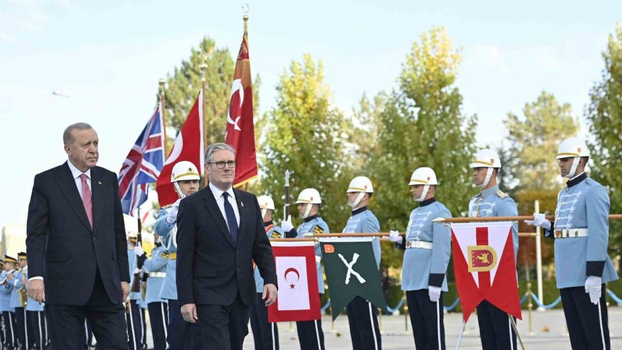Cumhurbaşkanı Erdoğan, İngiltere Başbakanı Keir Starmer’i Cumhurbaşkanlığı Külliyesi’nin ana giriş kapısında karşıladı. Cumhurbaşkanı Erdoğan ve Starmer’in tören alanındaki yerlerini almalarının ardından, 21 pare top atışı eşliğinde iki ülkenin milli marşları çalındı. Starmer, Muhafız Alayı Tören Kıtası’nı ’Merhaba Asker’ diyerek selamladı.