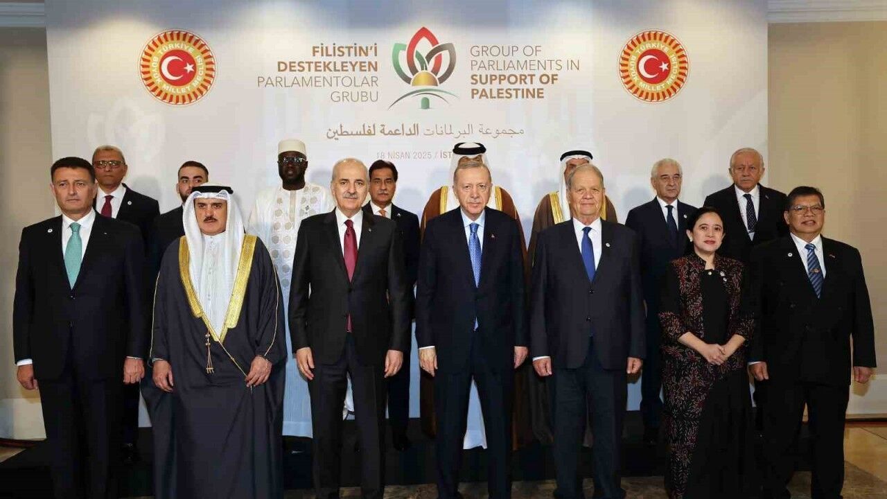 Cumhurbaşkanı Erdoğan, İstanbul Beşiktaş’ta bir otelde düzenlenen "Filistin’i Destekleyen Parlamentolar Grubu" toplantısına katıldı. Burada bir konuşma yapan Erdoğan, Filistin’i destekleyen parlamentolar grubunun her bir mensubuna yürekten teşekkür ettiğini belirterek, "Burada şu gerçeği tekrar hatırlatmak isterim. Filistin davasını savunmak sadece mazlum bir halkı savunmak değildir. Filistin’i savunmak insanlığı, barışı ve adaleti savunmaktır. Filistin davası yaklaşık bir asırdır her türlü zulme, barbarlığa ve katliama maruz kalmış bir halkın haysiyet davasıdır. Tüm bunlarla birlikte Filistin davası özü itibarıyla insan olma, insan kalma mücadelesidir. Müslümanların yanı sıra vicdan sahibi her insanın meselesidir. Elbette bu dava bir siyasetin de ötesinde bir vicdan meselesidir. Bugün burada bulunan siz kardeşlerim aslında bunu yapıyorsunuz. Duruşunuzla sadece Filistin’i ve Filistin halkını değil, insanlığı ve insani değerleri de savunuyorsunuz. Zulme karşı susmayarak, baskılara boyun eğmeyerek tüm insanlığa adeta nefes oluyorsunuz" dedi.