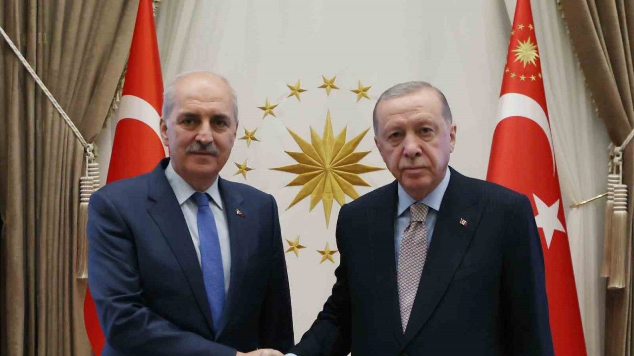 Cumhurbaşkanı Recep Tayyip Erdoğan, Türkiye Büyük Millet Meclisi (TBMM) Başkanı Numan Kurtulmuş’u kabul etti.