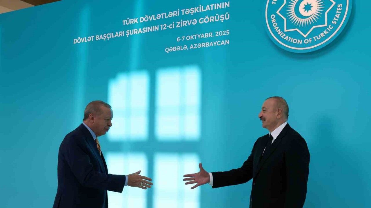 Cumhurbaşkanı Recep Tayyip Erdoğan, 6-7 Ekim tarihlerinde "Bölgesel Barış ve Güvenlik" temasıyla düzenlenen Türk Devletleri Teşkilatı (TDT) Devlet Başkanları Konseyi 12. Zirvesi’ne katılmak üzere geldiği Azerbaycan’ın Gebele kentinde temaslarına başladı. Erdoğan, TDT Devlet Başkanları Konseyi 12. Zirvesi’nin yapıldığı Haydar Aliyev Kongre Merkezi’ne giriş yaptı. Aliyev tarafından karşılanan Erdoğan hatıra fotoğrafı çektirdikten sonra Aliyev ile bir süre ayakta sohbet etti.