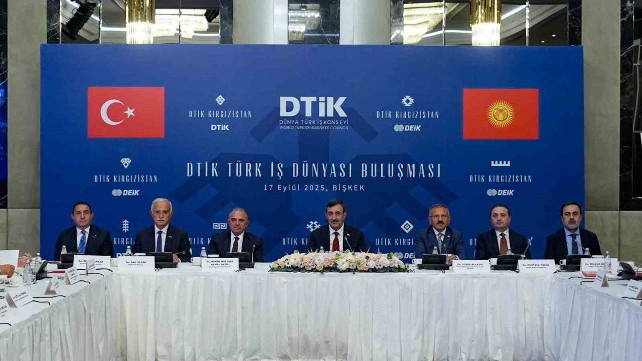 Cumhurbaşkanı Yardımcısı Cevdet Yılmaz, resmi ziyaret kapsamında geldiği Kırgızistan’da katıldığı Dünya Türk İş Konseyi (DTİK) Türk İş Dünyası Buluşması’nda, "Gerçekleştirdiğiniz her yatırım her proje sadece sizlerin değil hem Türkiye’nin hem de kardeş Kırgızistan’ın refahına, geleceğine yapılmış bir katkıdır. Bu yolda tüm kurumlarımızın sizlerin yanında olduğunu ifade etmek istiyorum" dedi.
