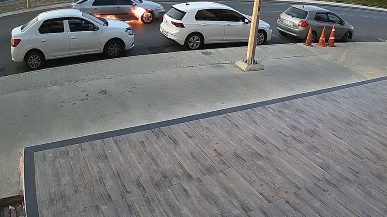 Silivri’de D-100 Karayolu yan yol üzerinde, eski Emniyet Müdürlüğü mevkiinde seyir halindeki bir binek araçta bilinmeyen bir nedenle yangın çıktı. Aracı durduran sürücü ve yanında bulunan bir kişi bagajdan yangın söndürme tüpünü çıkararak alevlere sıkmaya başladı. Çevredeki esnafın da yardımıyla yangın büyümeden söndürüldü. Araçta maddi hasar meydana gelirken, olay sırasında herhangi bir yaralanma yaşanmadığı öğrenildi.
