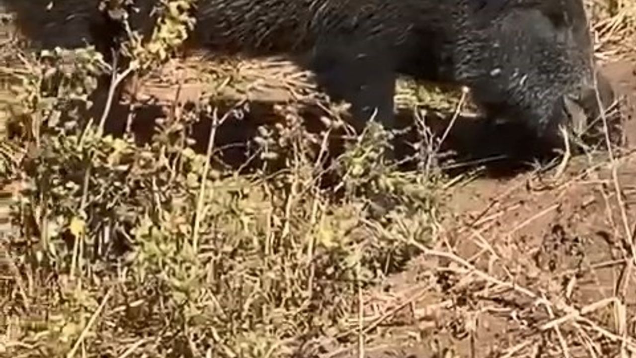 Elazığ’da bir vatandaş, kentin yüksek kesimlerinde göremediği domuzu merkeze bağlı Sütlüce köyünde gördü. Domuzun yanına yaklaşarak o anları kayda alan vatandaş, "Sen dağ bayır gez karşına bir tane çıkmasın ama Sütlüce köyünde senin karşına domuz çıksın. Şu an aramızda 3 metre ya var ya da yok. Ne acayip bir hayvanmış. Ağzına bak nasıl açıyor. Demek ki böyle kazıyor" ifadelerini kullandı. Vatandaşın cep telefonu ile kayda aldığı domuz bir süre sonra gözden kayboldu.