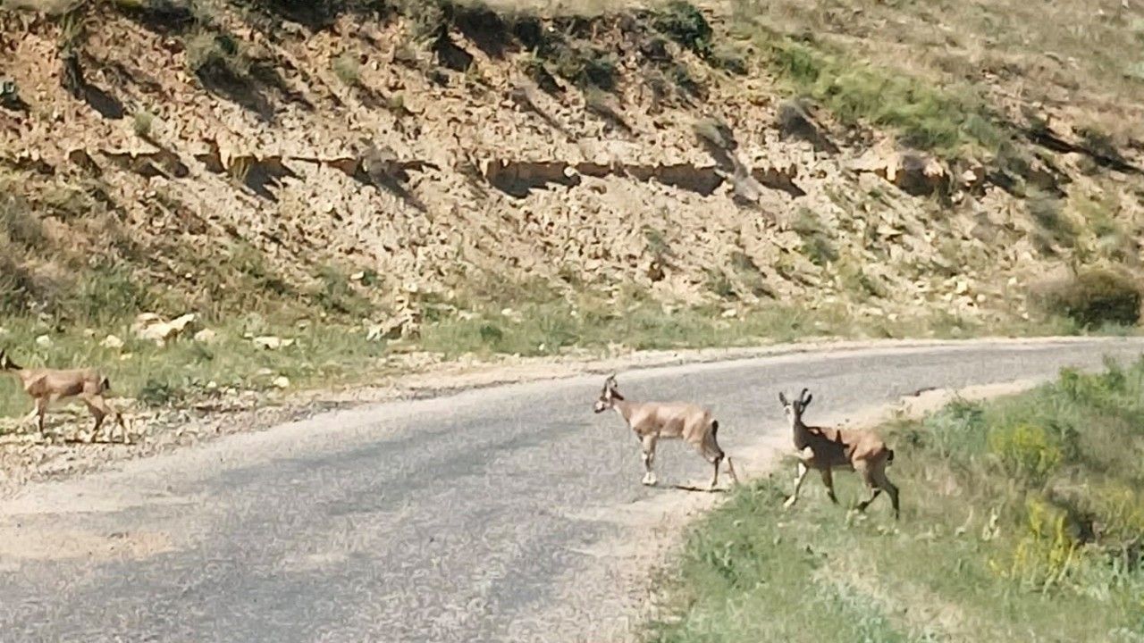 Malatya’nın Yazıhan ilçesinde bir vatandaş, nesli tehlike altındaki 3 dağ keçisini cep telefonu ile görüntüleyip sosyal medyada paylaştı.