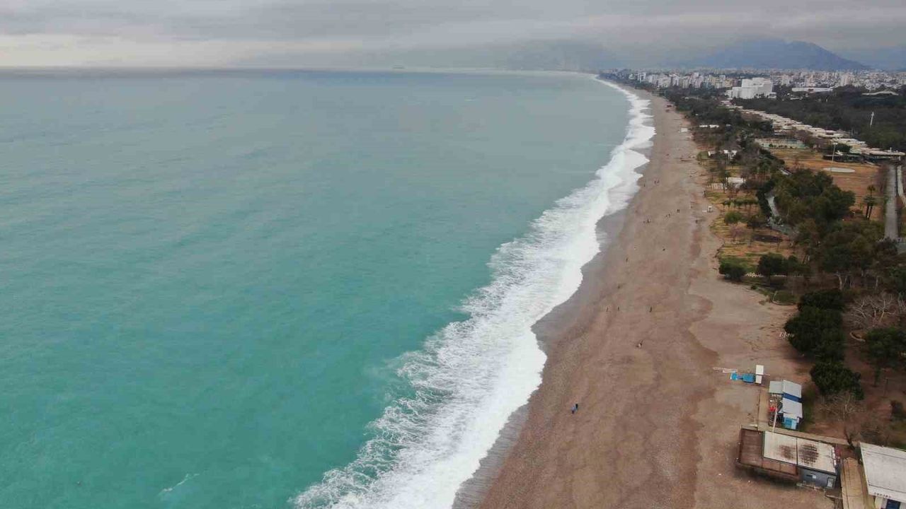 Meteoroloji Genel Müdürlüğü'nün dün akşam ve gece saatleri için sarı kod ile uyardığı Antalya'da şiddetli rüzgar ve yağış sonrası dünyaca ünlü Konyaaltı Sahili'nde dev dalgalar görsel şölen oluşturdu. Boyu 2 metreye kadar yükselen dalgaların dövdüğü Konyaaltı Sahili beyaza büründü. Kentte hava sabah saatlerinden itibaren hafif rüzgarlı ve parçalı bulutlu seyrederken, bazı vatandaşlar sahile gelerek oluşan manzarayı izledi. Sahile gelen vatandaşlar, bol bol fotoğraf çekinip, o anları kaydetti.