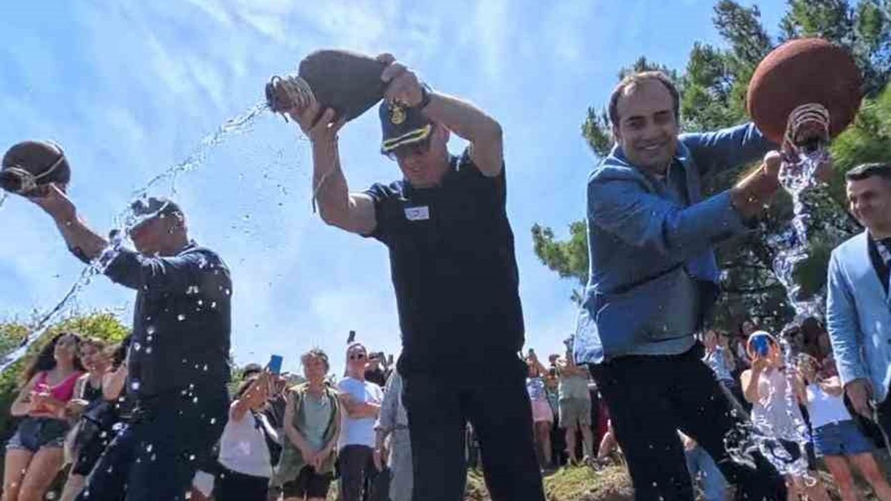 Ege ile Akdeniz’in birleşme noktası olan Muğla’nın Datça ilçesinde su testilerine doldurulan ve Akdeniz’den Ege’ye sembolik olarak taşınan deniz suyu, düzenlenen törenle Ege Denizi’ne döküldü.