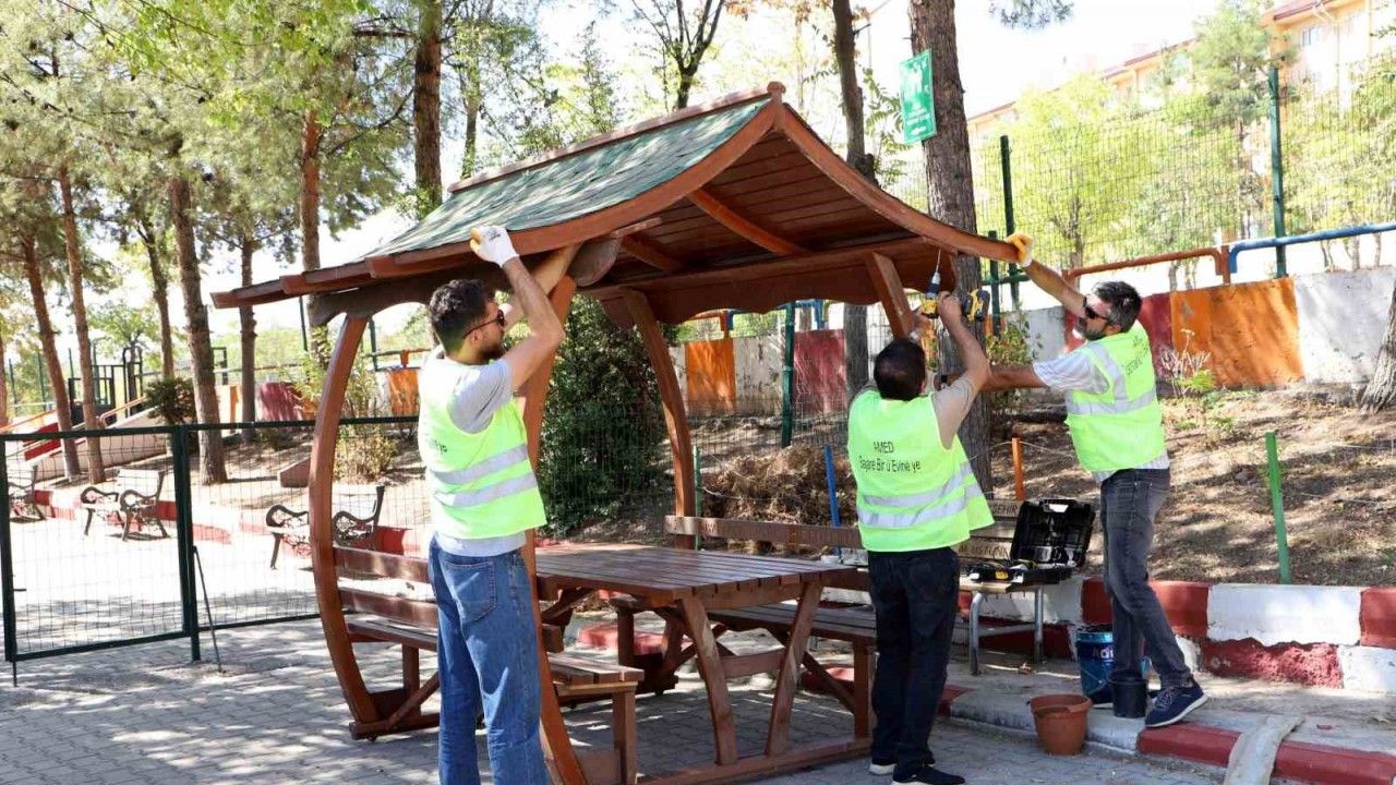 Park ve Bahçeler Dairesi Başkanlığı tarafından yürütülen çalışma kapsamında kamu kurumları, okullar, yas evleri, dernekler ve camilerin bahçe ile ortak kullanım alanlarına kent mobilyaları olarak adlandırılan oturma bankları, çatılı ve çatısız piknik masaları yerleştiriliyor.