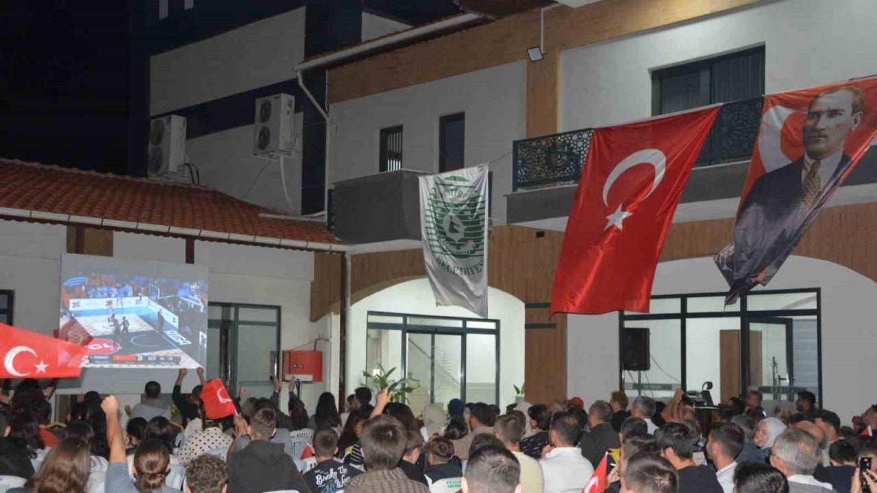 Manisa’nın Demirci ilçesindeki yüzlerce vatandaş EuroBasket 2025 final maçını belediye hizmet binası önüne kurulan dev ekrandan izledi.