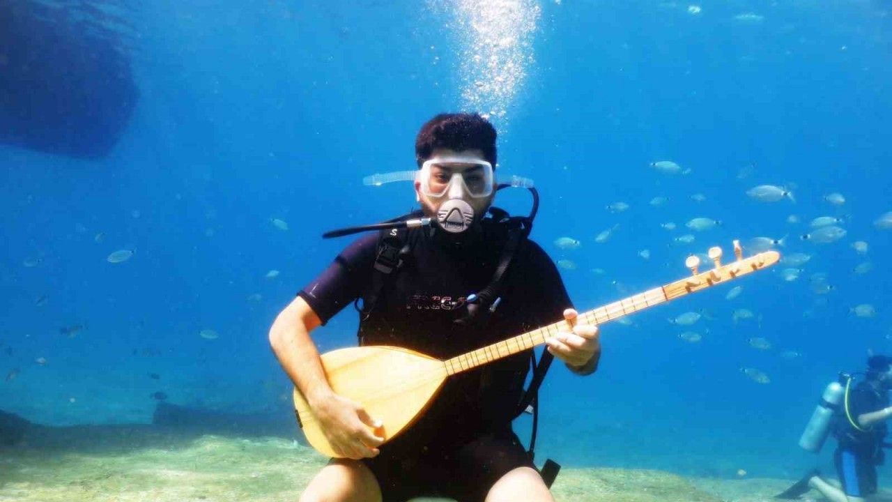 Fethiye’de denizin 5 metre derinliğine dalış eğitmeni Önder Diktaş ile birlikte dalış yapan, Türk Halk Müziği sanatçısı Yunus Koşar saz çalıp ’Halime Kız’ olarak bilinen Neşet Ertaş türküsünü seslendirdi.