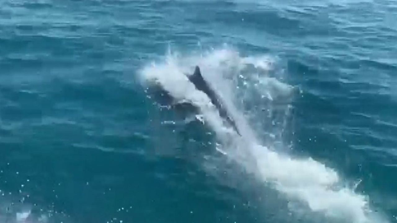 İl Emniyet Müdürlüğü Deniz Liman Şubesi ekipleri, Akdeniz’de rutin devriyeye çıktı. Bir kaç mil açıktaki devriye ekibinin yanında beliren yunuslar, polislere eşlik etti. Yunusların tekneyle birlikte ilerlediği anlar renkli görüntüler oluşturdu. Mersin İl Emniyet Müdürlüğü o görüntüleri, "Deniz Limanı Şube Müdürlüğü ekiplerimiz, Akdeniz’in eşsiz maviliklerinde devriye görevini bu kez sevimli yunus dostlarımız eşliğinde gerçekleştirdi. Mavinin kalbinde, güvenli yarınlar için her zaman görevdeyiz" notuyla paylaştı.