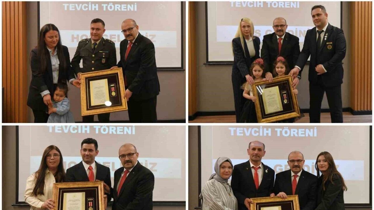 Vali Ustaoğlu, Valilik Necatibey Toplantı Salonunda gerçekleştirilen törende Şehit Uzman J. III. Kıdemli Çavuş Ümit Gıcır’ın babasın Musa Gıcır’a, Şehit Jandarma Uzman Çavuş Ercan Özcan’ın kızı Seval Özcan’a, Şehit Piyade Uzman Çavuş Yunus Öztürk’ün babası Efrahim Öztürk’e, Şehit Snr. Astsubay Kıdemli Çavuş Bahadır Canbulat’ın babası Tamer Canbulat’a, Gazi Piyade Üsteğmen Haşim Alparslan’a, Gazi J. Er Vahdettin Tozcu’ya, Gazi Piyade Uzman Çavuş Nefi Çandır’a ve Gazi Piyade Uzman Çavuş Uğur İslimye’ye Şehit Devlet iftihar Madalya ve Beraatlarını tevcih etti.