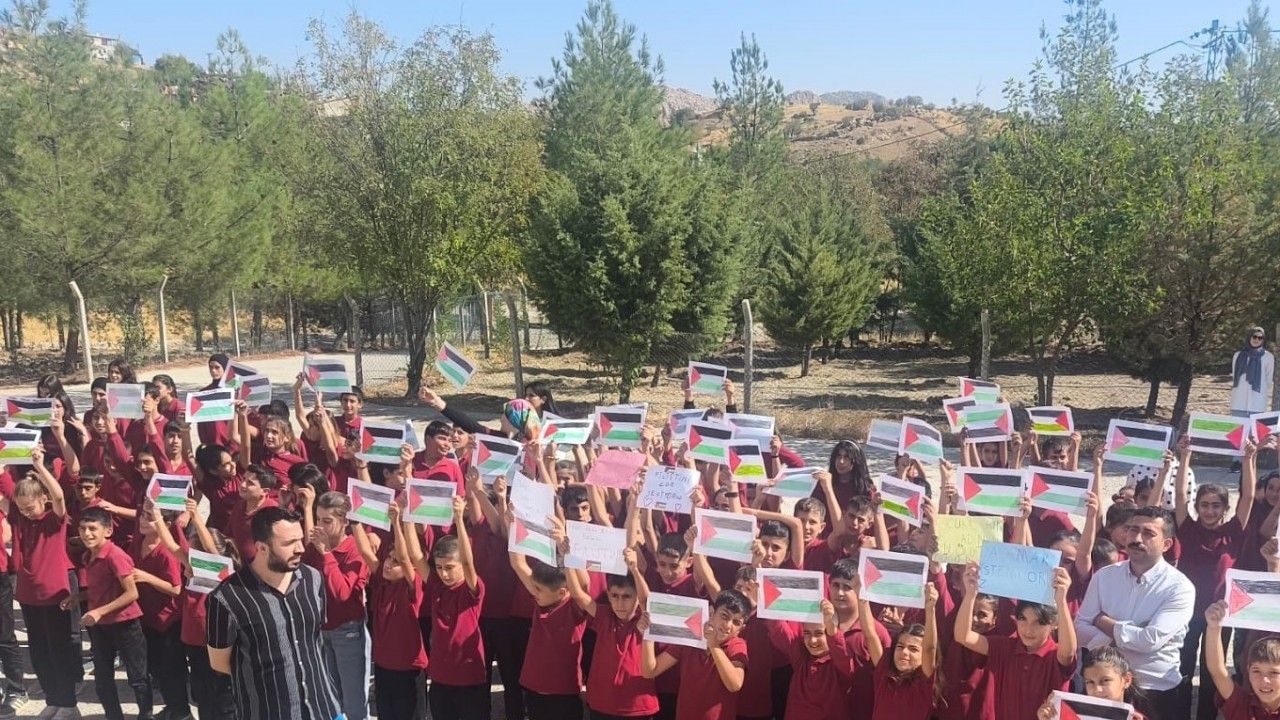 Diyarbakır’ın Dicle ilçesine bağlı kırsal Arı İmam Hatip İlk ve Ortaokulunda eğitim gören öğrenciler, Gazze’ye destek çalışması yaptı.