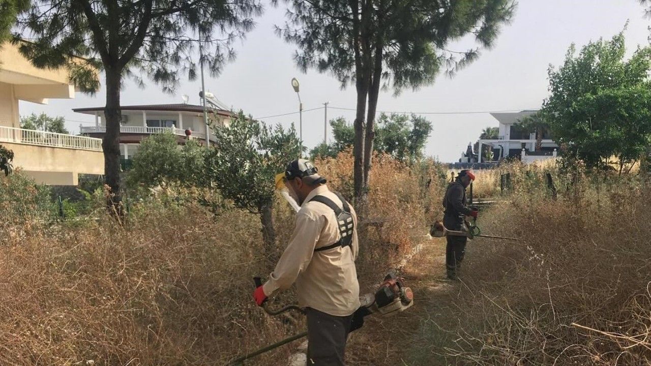 Aydın’ın Didim ilçesinde saha çalışmalarında hız kesmeyen belediye ekipleri, Hisar Mahallesi’nde kuru otları temizledi.