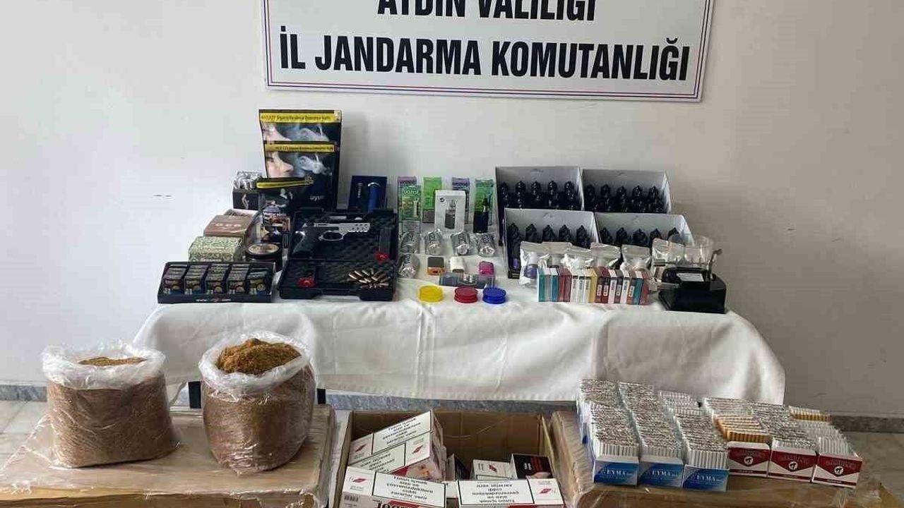 Aydın İl Jandarma Komutanlığı KOM Şube Müdürlüğü ve Didim İlçe Jandarma Komutanlığınca 5607 Sayılı Kanuna Muhalefet suçuna yönelik koordineli çalışma başlatıldı. Didim ilçesinde elektronik sigara/sigara imal ve ticareti yaptığı tespit edilen şüpheli bir şahsın işyerinde ve ikametinde yapılan aramada, 82 bin 760 adet içi tütün doldurulmuş makaron, 10 kg açık tütün/nargile tütünü, 15 adet elektronik sigara, 126 adet elektronik sigara likiti, 1 adet elektronik nargile cihazı, muhtelif miktarda paket sigara/puro, 1 adet sigara sarma makinesi, 1 adet tabanca, 2 adet şarjör ve 17 adet fişek ele geçirildi. Şüpheli şahıs ile ilgili adli ve idari sürecin devam ettiği öğrenildi.