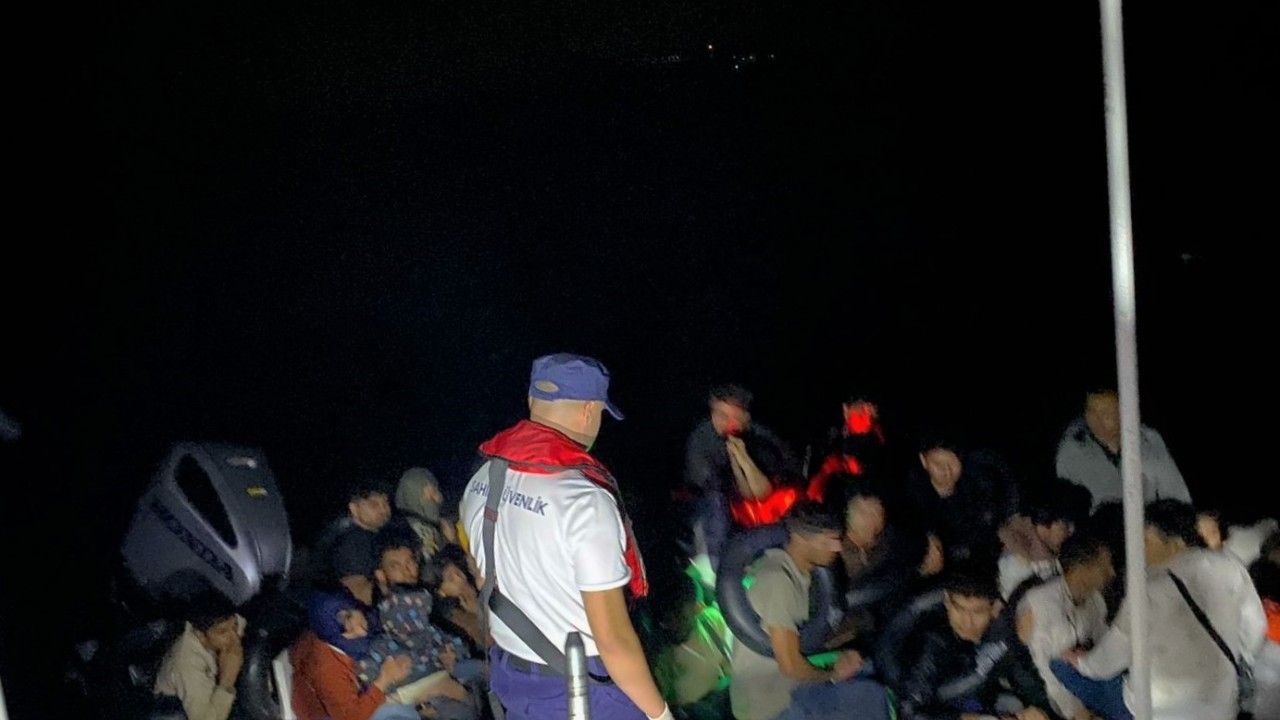 Aydın’ın Didim ilçesi açıklarında Yunanistan tarafından geri itilen lastik bot içerisindeki 18’i çocuk 71 düzensiz göçmen kurtarıldı.