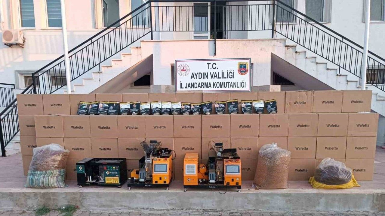 Aydın İl Jandarma Komutanlığı Didim İlçe Jandarma Komutanlığınca icra edilen takipli faaliyet kapsamında şüpheli 1 şahsın iş yerinde arama yapıldı. Yapılan aramada, 93 bin 9800 adet doldurulmuş makaron, 73 kg kıyılmış tütün, 3 adet Makaron Doldurma Makinası olmak üzere, piyasa değeri toplam 1 milyon 200 bin TL değerinde ürün ele geçirildi. İş yeri sahibi hakkında adli süreç başlatıldığı öğrenildi.