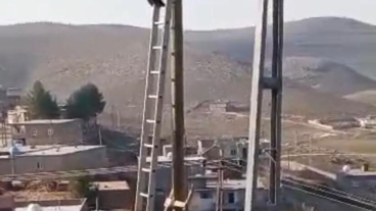 Diyarbakır’ın Çınar ilçesinde köpekten kaçarken elektrik direğinde mahsur kalan kedi, merdiven yardımıyla kurtarıldı.